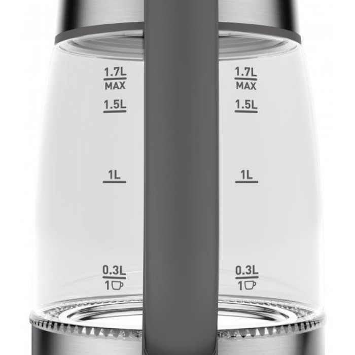 Чайник виконаний із прозорого термостійкого скла, яке робить його дизайн ще більш елегантним.