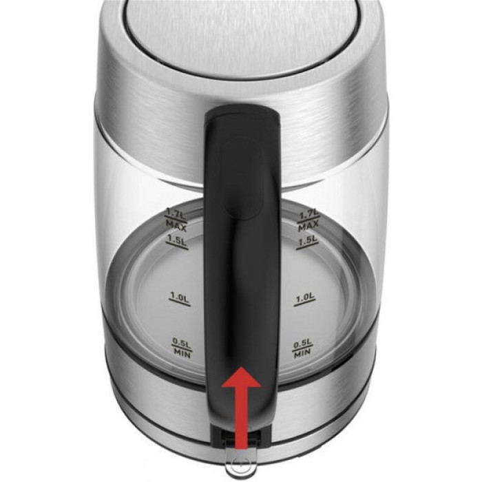 Відсік для шнура, Індикатор увімкнення, Блокування кришки, Автоматичне вимкнення при закипанні, Автоматичне відключення при знятті з основи, Підсвічування, Автоматичне вимикання при відсутності води, Поворот на підставці на 360°, Індикатор рівня води