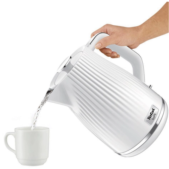 Чайник TEFAL LOFT – стильний електрочайник, потужністю 2400 Вт, об'ємом 1.7 л з індикатором роботи та індикатором рівня води. Має прихований нагрівальний елемент. Оснащений функцією автовідключення та захистом від включення без води. Матеріал корпусу – пластик, колір – білий. Простий в експлуатації та догляді. Кришка із фіксатором.
