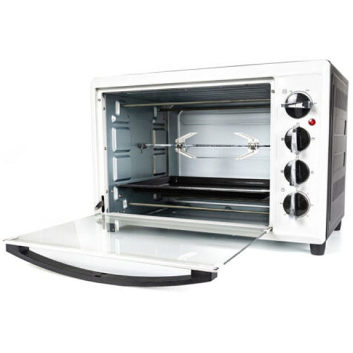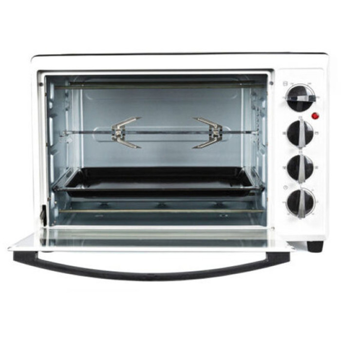 Електропіч має механічний регулятор температури, розташований на лицьовій панелі. Термостат дає змогу регулювати температуру від 100 до 250°С. Така можливість налаштування теплового режиму дозволяє готувати страви як за легкого термічного впливу, так і максимально сильного (при 250°С). Гаряче повітря всередині печі розподіляється рівномірно, тому страви не пригорають навіть за високої температури.