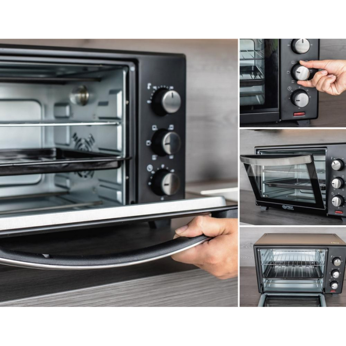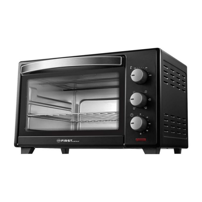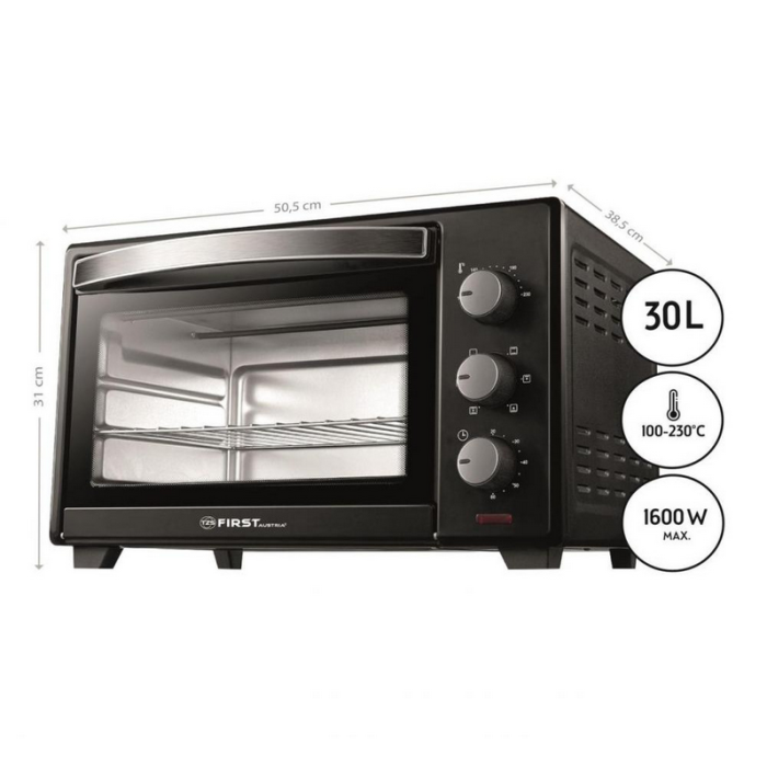 First FA5043 1 – компактна настільна електропіч потужністю 1,6 кВт. Модель має інтуїтивно зрозумілу панель управління і може похвалитися широким функціоналом і багатим набором додаткових аксесуарів для комфортного користування. Об'єм духовки становить 30 літрів, за наявності двох нагрівальних елементів цього достатньо, щоб всього за кілька хвилин підсмажити хлібці, приготувати на сніданок бутерброди або подати до святкового столу фірмову страву з хрусткою ароматною скоринкою.