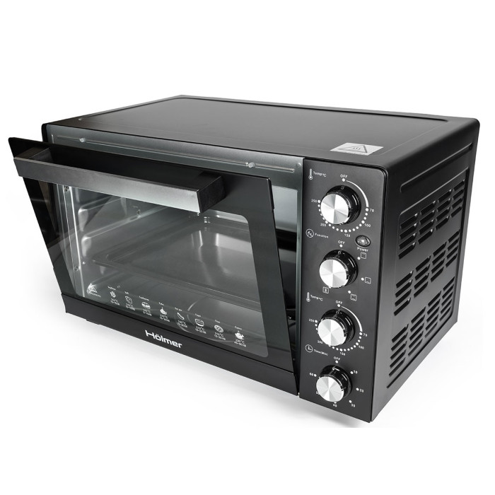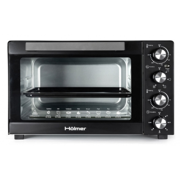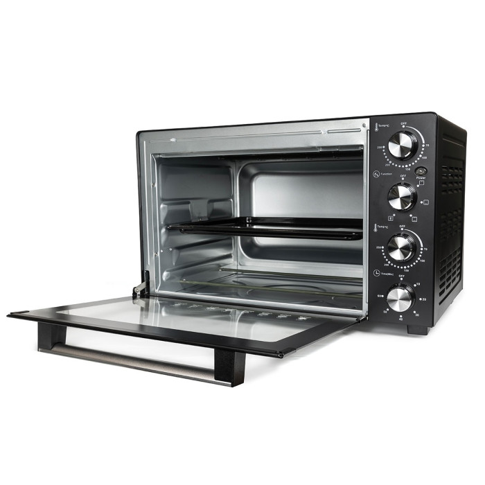 Духовка електрична, потужність 1700 Вт, об'єм 50 л, механічне керування, гриль, конвекція, випікання, запікання, таймер 60 хв, терморегулятор 70-250ºС, звуковий сигнал, індикатор роботи, термостійке скло, внутрішня поверхня камери - антипригарна
