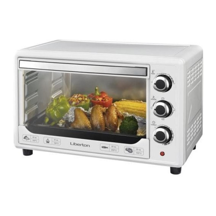 Німецький бренд Liberton представляє настільну електричну духовку LEO-380 white з простим управлінням. Модель компактна, дає змогу приготувати випічку, запекти, обсмажити на грилі апетитні страви. Загальний об'єм духовки 38 літрів, потужність - 1600 Вт, габаритні розміри - 51,8х40х32,9см. Механічний регулятор температури (максимальна - 2500С) має 3 положення рівня нагріву, а таймер дає змогу задавати час до 60 хвилин. Корпус електродуховки металевий, чорного кольору, внутрішня камера виготовлена з неіржавкої сталі, у дверцята вставлено одне загартоване скло. У комплект входять: ручка для дека, решітка для гриля, додаткове деко.