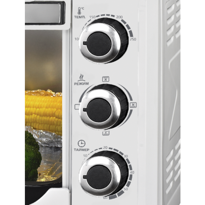 Духовка настільна Liberton LEO-480 White, потужністю 2000 Вт, вирізняється стильним лаконічним дизайном, виконаним у класичному білому кольорі, завдяки чому чудово вписується в будь-який кухонний інтер'єр. Її об'єм становить 48 л, чого цілком достатньо для приготування смачних і корисних страв для всієї родини. З її допомогою Ви зможете швидко розігріти їжу, розморозити або приготувати продукти. Механічне управління дасть змогу вибрати один із режимів потужності та встановити таймер із часом до 60 хв. Модель оснащена прозорими дверцятами, виготовленими з жаростійкого скла, завдяки яким Ви зможете легко контролювати процес приготування страв. Духовка Liberton LEO-480 White має досить компактні габарити, що дають змогу встановити її в будь-якому зручному для Вас місці, навіть в умовах обмеженого простору.