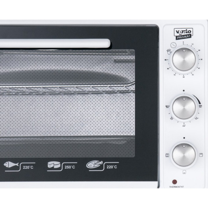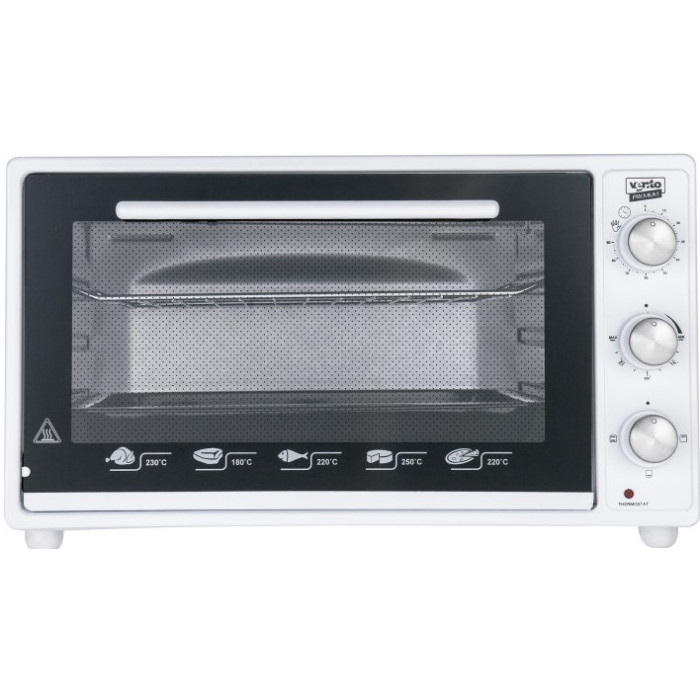 Електрична настільна духовка Ventolux Karina потужністю 1300 Вт ідеально підійде для швидкого та якісного приготування різноманітних корисних страв, пропонуючи для цього об'ємом 36 л. Механічна панель керування дозволить вибрати один із трьох режимів нагрівання. Корпус, виготовлений з високоякісної сталі з емалевим покриттям, не тільки ефективно протистоїть механічним пошкодженням, легко очищається від забруднень будь-якої тяжкості, але й гарантує тривалий термін служби приладу зі збереженням прекрасного зовнішнього вигляду. Прозорі, виконані з міцного термостійкого скла дверцята дозволять безперешкодно контролювати процес приготування їжі. Духовка Ventolux Karina - ідеальний варіант для тих, хто любить просту, надійну, при цьому легку в експлуатації та догляді техніку.
