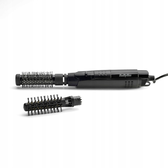 Завдяки двом насадкам у комплекті ви зможете створювати найсміливіші образи. Термощітка має діаметр 28 мм та більш рідку щетину. Щітка з натуральною м'якою щетиною має діаметр 19 мм і щільнішу щетину. Моделюйте різні зачіски, створюйте гарні локони з феном-щіткою Babyliss AS86E. Насадки легко змінюються та надійно фіксуються. Надайте додатковий об'єм волоссю або підкручуйте його одним простим рухом.
