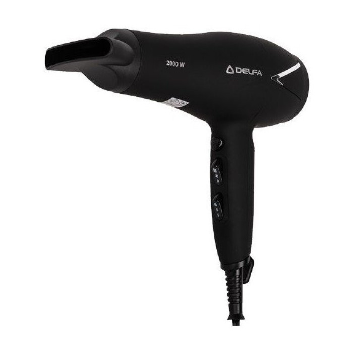 Фен побутовий Delfa HDE8900 призначений для щоденного використання, буде добрим помічником для будь-якої жінки. Модель вирізняється стильним дизайном, високою потужністю та якістю. Корпус виготовлений із міцного пластику з прогумованим покриттям. Зручна вузька ручка вміщує кілька різних кнопок і регуляторів для повноцінної налаштування пристрою. Потужність представленої моделі складає 2000 Вт. вона потрібна для ефективної роботи з укладаннями, для сушіння довгого волосся. Дві швидкості дають вибір, чи працювати на максимальній потужності, чи зменшити її, також є режими температури, що дозволяють вибрати температуру, з якою буде виконуватися робота. Існує функція іонізації, а також подачі холодного обдування.