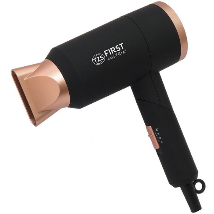 First FA-5653-5 Black - надійний фен, що виділяється всім потрібним, щоб забезпечити вам найшвидше і в той же час безпечне сушіння локонів. Його сила дії дорівнює 1800 Вт, є 2 режими температури, і він може працювати в 2-х швидкісних режимах швидкості. Наділено прилад спеціальною насадкою-концентратором. Важливими перевагами пристрою можна вважати захист від перегріву.