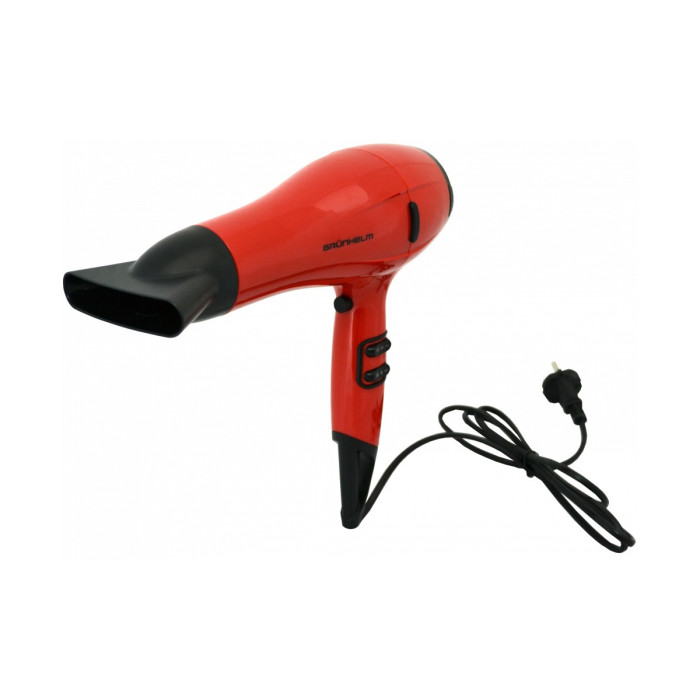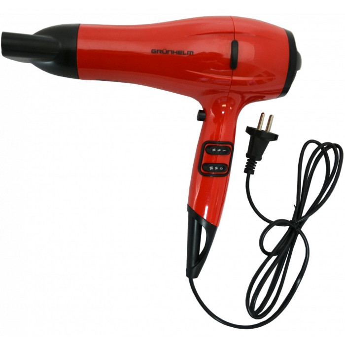 Grunhelm GHD-595 - надійний фен, що має гарну потужність в 2400 Вт. Залежно від типу та стану волосся ви можете вибрати найбільш оптимальний режим роботи. Насадка-концентратор забезпечує сильний потік гарячого повітря безпосередньо на окремий локон, сприяючи створенню більшого укладання.