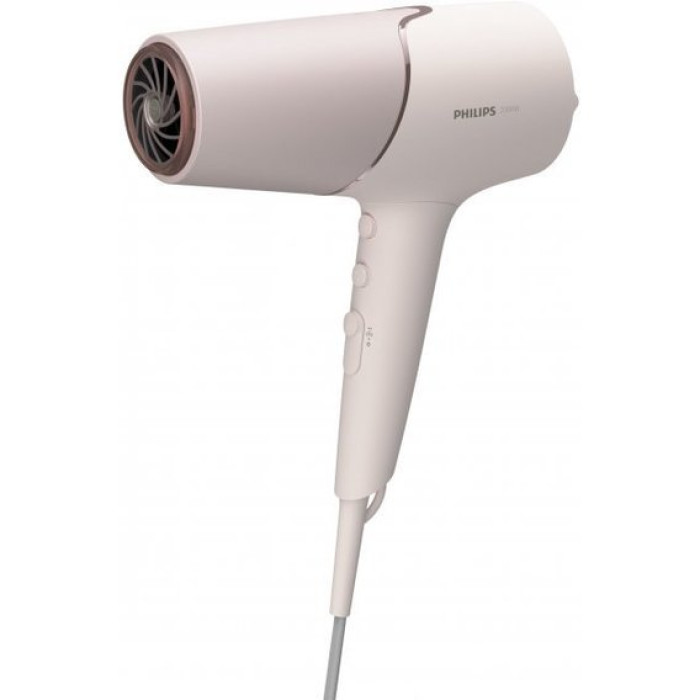 Фен Philips BHD530/00 випускається в сучасному лаконічному дизайні в стильному ніжному кольорі перловий персик. Він оснащений надійним двошвидкісним двигуном, що розганяє повітряний потік до 110 км/год. Пристрій потужністю 2300 Вт функціонує в трьох температурних режимах під контролем технології ThermoShield. Її датчик стежить за температурою повітря, що виходить, не допускаючи пошкодження волосся через перегрів. Модель оснащена системою мінеральної іонізації, яка знижує вплив ультрафіолетового випромінювання, а за рахунок генерації негативно заряджених іонів - аніонів - робить волосся гладким і блискучим. Для фінального акорду процесу є функція холодного обдування. Завдяки їй зачіска фіксується і зберігається тривалий час. Прилад укомплектований двома насадками: концентратором шириною 11 мм для формування спрямованого повітряного потоку і дифузором, за допомогою якого надається додатковий об'єм. Фен Philips BHD530/00 підключається до мережі обертовим шнуром живлення довжиною 1,8 метра, а зберігатися може за петлю для підвішування.