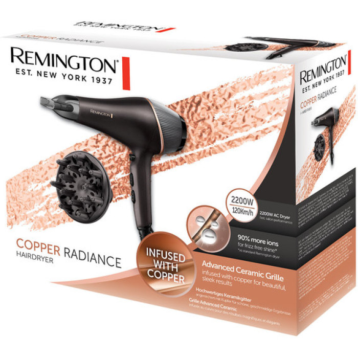 Хочете салонне укладання, не виходячи з дому? Що ж, тепер ви можете зробити це з феном Copper Radiance. Завдяки потужному мотору змінного струму, 2200 Вт, та швидкості повітряного потоку 120 км/год, ви можете насолоджуватися високою продуктивністю та укладанням, як після салону.