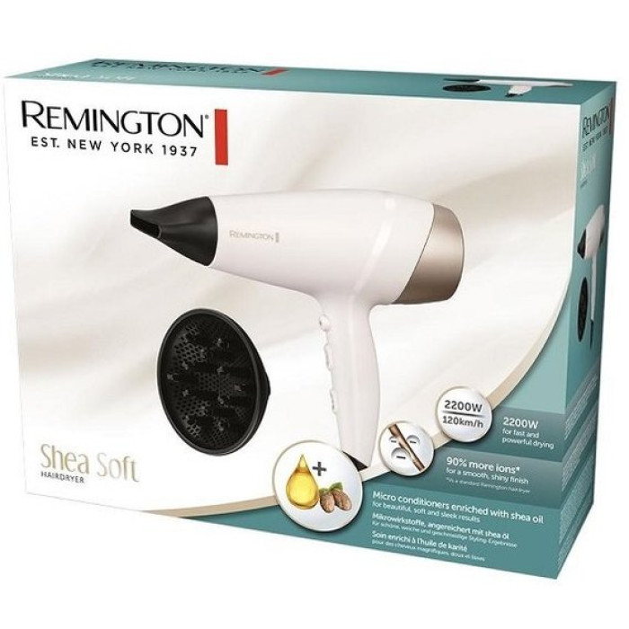 Фен Remington D4740 SHEA SOFT оснащений двигуном потужністю 2200 Вт і здатний швидко висушити волосся будь-якої довжини. Функція іонного кондиціювання створена для збереження здоров'я та блиску волосся. Цей чудовий фен допоможе вам завжди чудово виглядати.