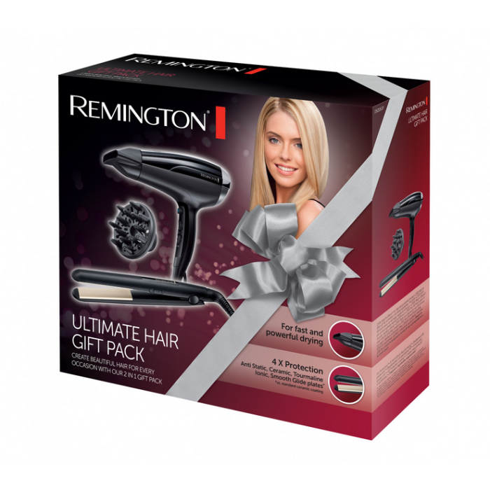 Фен + випрямляч (праска) Remington D5215GP класичного дизайну та чорного кольору виконають сушіння, укладання та випрямлення волосся в домашніх умовах або в салонах та перукарнях. Модель виконана із міцного пластику із зручною ручкою, на якій розташовані перемикачі двох швидкостей, трьох температурних режимів та кнопка подачі холодного повітря. Прилад укомплектований насадками дифузора та концентратора. Для зберігання чи підвішування у процесі роботи передбачена спеціальна петля. Випрямляч (праска) з керамічним турмаліновим покриттям забезпечує дбайливий вплив на волосся, тому воно зберігає свій блиск і м'якість. Вбудована функція іонізації робить їх слухняними. Працює праска при температурі від +1800С до 2200С, нагріваючись до вибраного значення за 30 секунд. Мережевий провід довжиною 1,8 метра обертається, не заплутуючи, на 3600. Фен + випрямляч (праска) Remington D5215GP необхідні для сушіння, укладання та випрямлення волосся, щоб досягти доглянутого вигляду та почуватися ідеально.