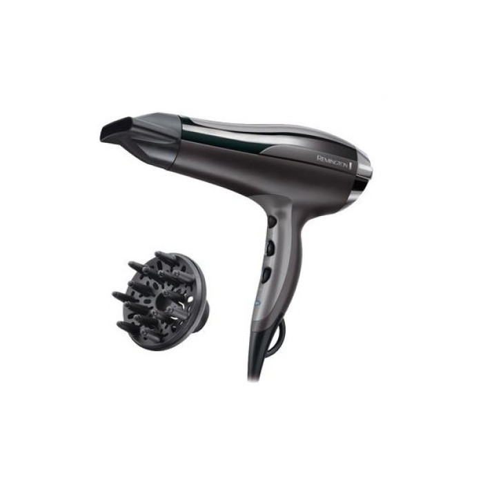 Фен Remington D5220 помітно виділяється зі своєї категорії, великою потужністю 2400 Вт, і хорошим функціоналом. Remington D5220 виробляється із застосуванням сучасних технологій у поєднанні з керамічним покриттям, за рахунок яких забезпечується не тільки швидке сушіння та укладання волосся, але й додатковий догляд за ними. Встановлений іонний генератор забезпечить здоровий блиск будь-якого типу волосся, а функція турбо істотно скоротить час їхнього сушіння. Працювати фен може в трьох різних температурних режимах і в двох швидкостях, також в ньому встановлена функція холодного обдування, необхідна для кращої фіксації зачіски. А входять в комплектацію Remington D5220 концентратор і дифузор розширюють можливості створення різних укладок, набагато полегшуючи процес.