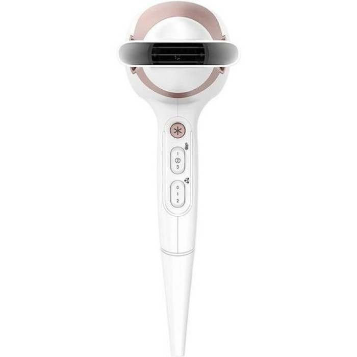 Фен Rowenta Studio Glow CV5830 випускається в стильному сучасному дизайні в ніжних біло-рожевих тонах. Модель потужністю 2300 Вт укомплектована дифузором і щілинним концентратором розміром 14 мм. За допомогою дифузора волосся піднімається, створюючи об'єм, а насадка-концентратор, формуючи спрямований повітряний потік, висушує й укладає локони. Перемикачами на зручній ручці обирається одна з двох швидкостей повітря і один з трьох рівнів температури. У режимі Thermo Control встановлюється оптимальна температура, що не допускає перегріву і пересушування волосся. Функція іонізації нейтралізує статичну електрику і закриває волосяні лусочки, після чого волосся стає гладким і шовковистим. На фінальному етапі подається холодне повітря, яке надовго закріплює результат старань користувача. До мережі фен Rowenta Studio Glow CV5830 під'єднується обертовим шнуром живлення довжиною 1,8 метра.