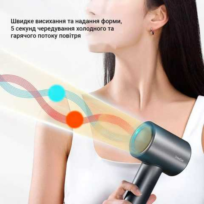 Xiaomi ShowSee Hair Dryer A18 Black (A18-GY) – фен для волосся. Завдяки потужному потоку повітря, висушити волосся тепер не забере багато часу. Пристрій має іонізатор потоку повітря. Об'ємний потік іонізованого повітря замикає вологу всередині волосся і робить його блискучим і шовковистим, захищає від статичної електрики і запобігає перерізу кінчиків. Фен має функцію швидкого сушіння та укладання, змінна зміна гарячого та холодного потоку повітря кожні 5 секунд. Швидкість потоку сягає 60 м/сек. Не важливо на скільки густе у вас волосся, на сушіння потрібно до 3-5 хвилин.