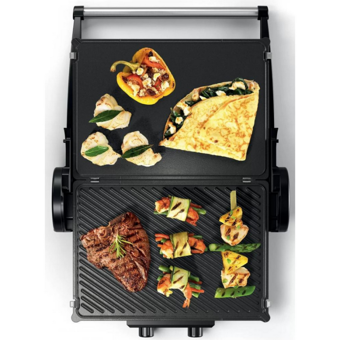 Різноманітні варіанти приготування завдяки трьом можливим позиціям нагрівання поверхоні: закрита в якості контактного гриля, відкрита і з фіксацією на певній відстані для запікання між поверхнями.Плавний терморегулятор дозволяє з легкістю встановити необхідну температуру для оптимального прожарювання страви