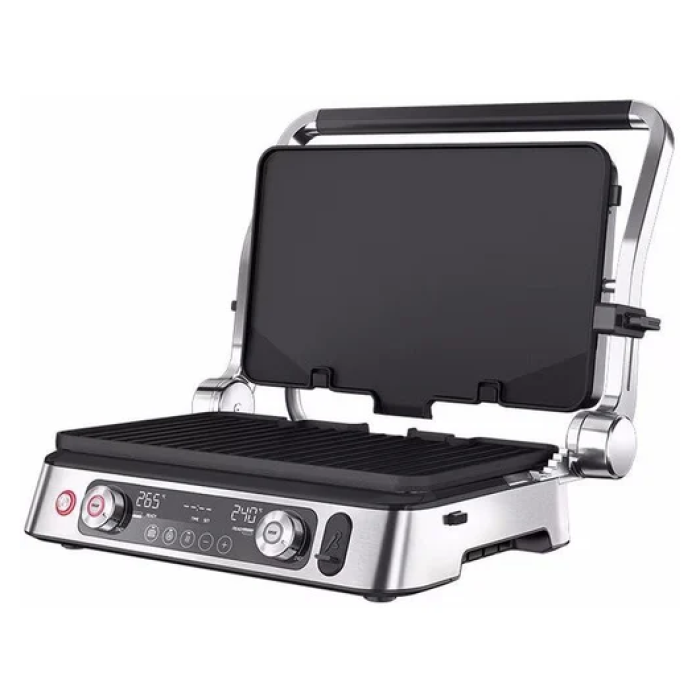 Вбудований термозонд. Насолоджуйтесь улюбленим м'ясом, приготованим на грилі, від рідкісного до добре смаженого. Вбудовані нагрівальні елементи - передача тепла безпосередньо на пластини для швидкого та рівномірного нагрівання. Максимальна універсальність завдяки контактному, відкритому та духовому положенню.