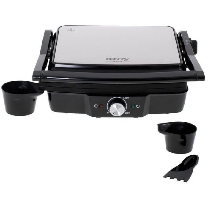 Електричний гриль Camry CR 3053 з максимальною потужністю 2500 Вт дозволяє приготувати широкий асортимент гарячих страв - від смажених бургерів, стейків, свинячої шиї, курки та іншого м'яса до овочів та сиру на грилі. Нагрівальні пластини захищені тефлоновим покриттям, завдяки якому їжа не прилипає, а наступне миття займає буквально хвилину. Крім того, покриття дозволяє готувати на грилі без додавання жиру, що робить їжу здоровішою. Гриль має велику поверхню для гриля – достатньо, щоб приготувати їжу для сім'ї чи компанії друзів одночасно.