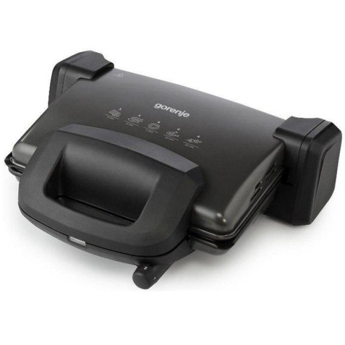 Контактний гриль Gorenje KR 1800 SM з рельєфною ребристою поверхнею. Спеціально призначений для приготування гарячих бутербродів, сандвічів зі складними начинками, м'яса, риби, птиці, для підсмажування сосисок і овочів. Гриль має 4 температурних режиму, завдяки чому Ви зможете вибрати необхідний ступінь підсмажування. Контактний гриль оснащений спеціальною не нагрівається ручкою для зручного і безпечного відкриття гриля.