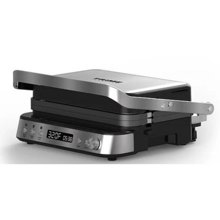Електрогриль PRIME Technics PGH 208 KX зі світлодіодним дисплеєм та максимальною потужністю 2000 Вт, дає можливість приготувати широкий асортимент гарячих страв від підсмажених бургерів, стейків, свинячої шиї, курки та іншого м'яса до овочів та сиру на грилі. Нагрівальні пластини захищені антипригарним покриттям, завдяки якому їжа не прилипає, а наступне миття займає буквально хвилину.