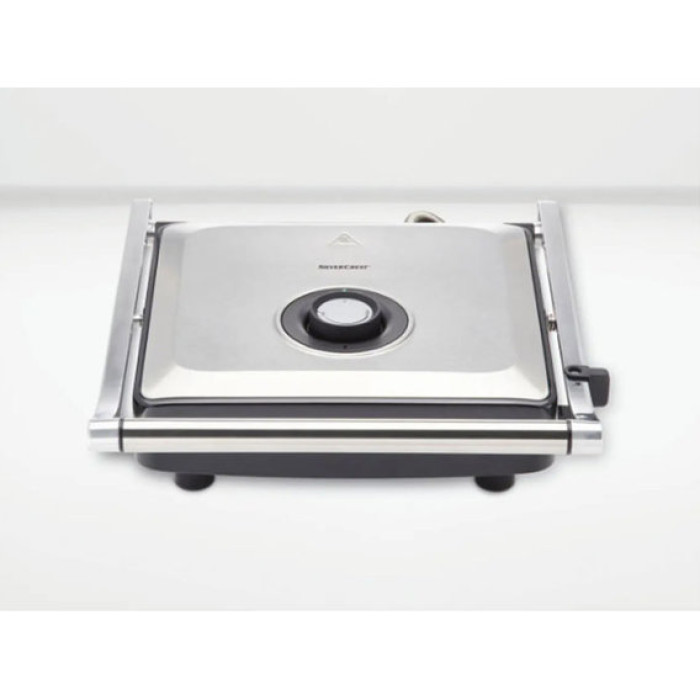 Корпус з облицюванням із нержавіючої сталі. Регульований кут нахилу пластини. Максимальний час нагрівання (200 °C): близько 3 хвилин. Регулює температуру за допомогою поворотного регулятора. Контрольні індикатори Ручка без нагріву. Шпатель у комплекті. Довжина мережевого кабелю: близько 1 м. Захист від перегріву.