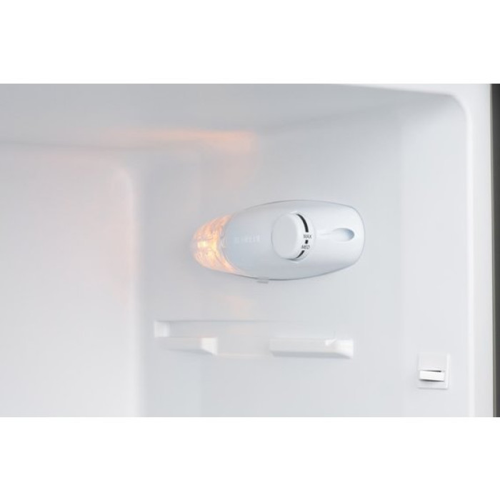 У холодильному відсіку є три основні полиці та три полиці на дверях, а також фреш-зона для зберігання делікатних продуктів, овочів та фруктів. Внутрішнього простору вистачить для достатньої кількості свіжих продуктів, баночок, напоїв та заморозки. У морозильній камері встановлено полицю-решітку, яка розділяє її навпіл. Компактні розміри