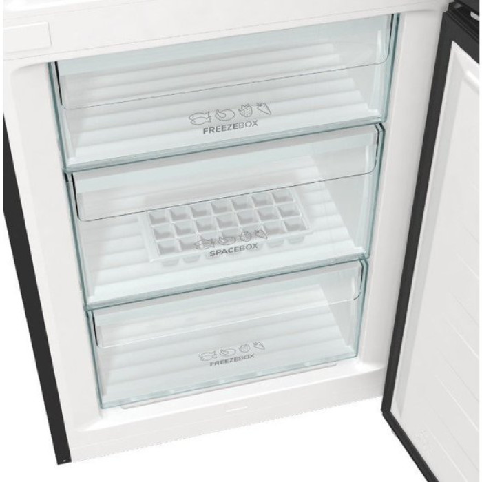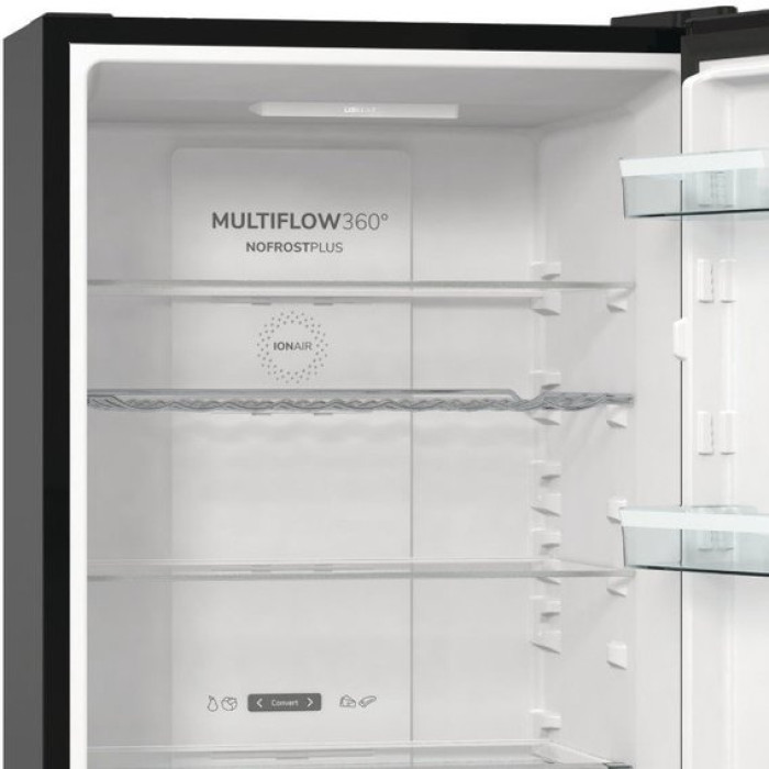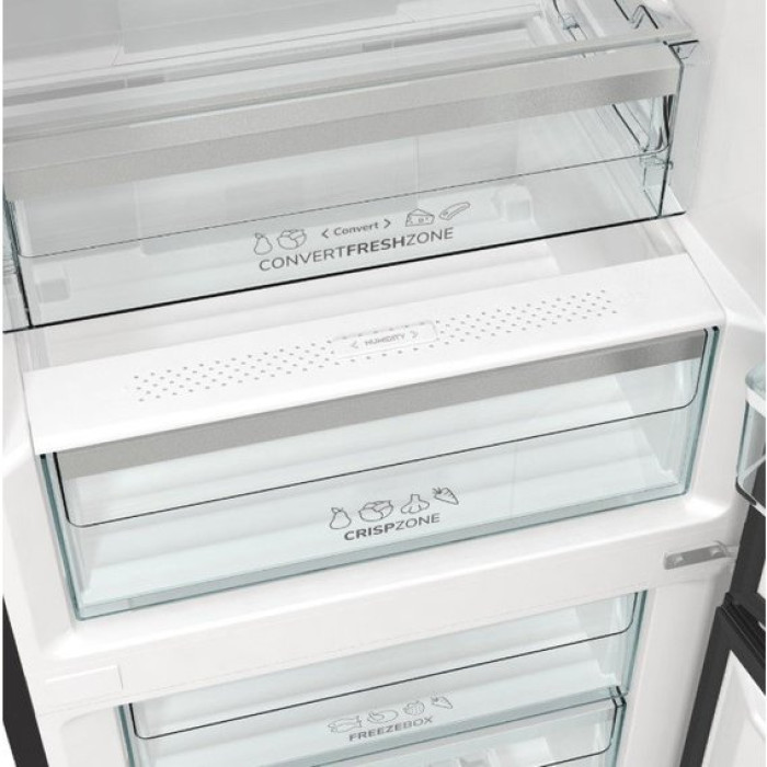 Холодильник Gorenje елегантного чорного сталевого кольору. Холодильник Gorenje має новий, більш сучасний та модний зовнішній вигляд із чорної сталі.