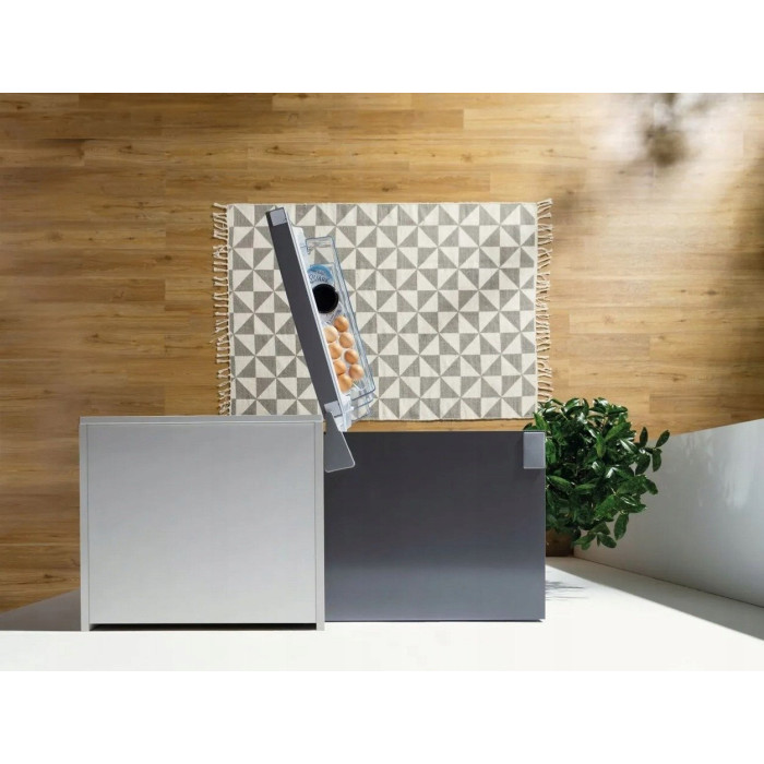 Одна з найкращих систем охолодження, встановлена в морозильній камері, запобігає утворенню льоду та інею, щоб знизити споживання енергії. В результаті оптимізується використання об'єму, а розморожування та чищення внутрішнього простору більше не потрібне. Пакети або шматки заморожених продуктів не прилипають один до одного, зберігаючи продукти в чистоті та порядку.