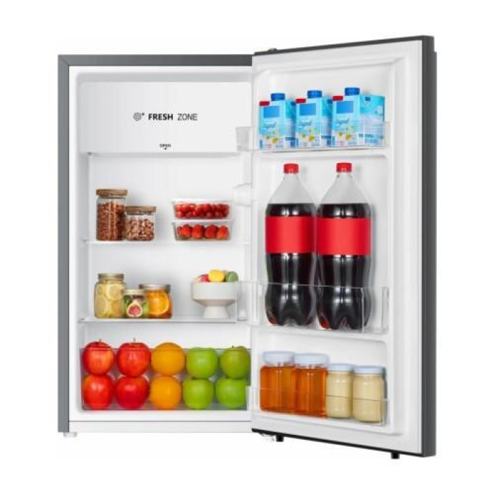 Холодильник, загальний об'єм: 94 л, клас енергоспоживання: F, механічне керування з регульованим термостатом, світлодіодне освітлення, 1 скляна полиця, відділення для фруктів та овочів, реверсивні двері, розміри (ШxГxВ): 47,5 x 44,8 x 84,2 см