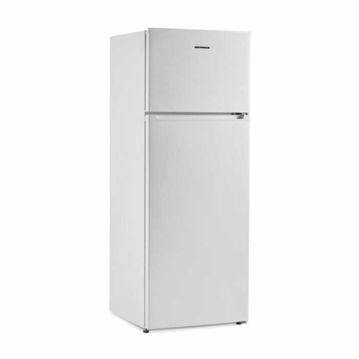 Двокамерний холодильник HEINNER HF-V213F+ білого кольору має корисний об'єм холодильника - 171 та морозильної камери - 42. Представлена модель відмінно впишеться в кухню навіть невеликої площі або інше приміщення в будинку, квартирі, на дачі або в офісі. У ньому є три скляні полиці, набряк для овочів і внутрішнє світлодіодне освітлення. Прилад з механічним керуванням, технологією Less Frost, суперзаморозкою, класом енергетичної ефективності F та морозильною камерою у верхній частині. Він радуватиме Вас тривалим зберіганням будь-яких продуктів, у тому числі овочів, м'яса, риби, молочних продуктів. Холодильник не вимагає спеціального догляду, легко очищається, швидко розморожується і працює безшумно, забезпечуючи комфорт при використанні.