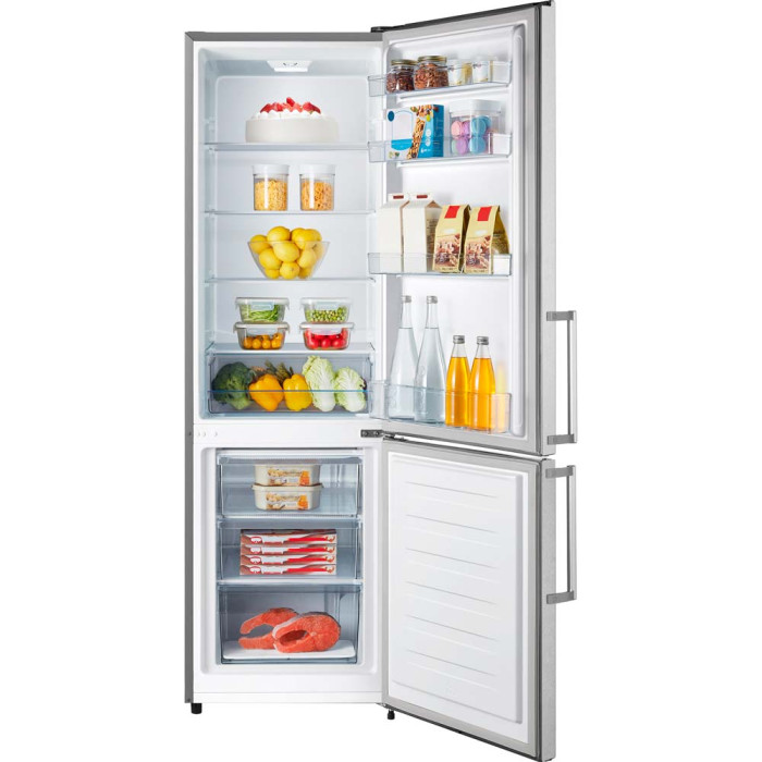 окремо, двокамерний, Загальний об'єм холодильника - 269 л, Система розморожування No Frost (Frost Free) - без No Frost, E, поршневий, Корисний об'єм холодильної камери - 198 л, Полиці холодильної камери - 3 шт, Корисний об'єм морозильної камери - 71 л , Кількість секцій у морозильній камері - 3 шт., 39 дБ, 180 см, 55 см, 55.8 см, 53 кг, Колір - сріблястий