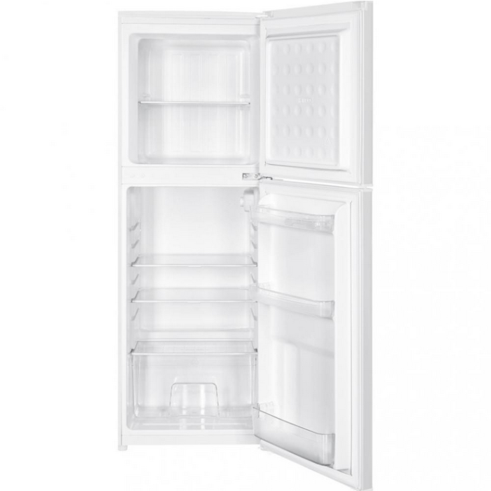 Двокамерний холодильник Hölmer HTF-654WD має загальний об'єм холодильної камери 143 літри, з яких корисний об'єм становить 141 літр. Це дозволяє зберігати велику кількість продуктів, організувавши простір максимально ефективно. Морозильна камера має загальний об'єм 96 літрів і корисний об'єм 88 літрів, що ідеально підходить для тривалого зберігання заморожених продуктів.