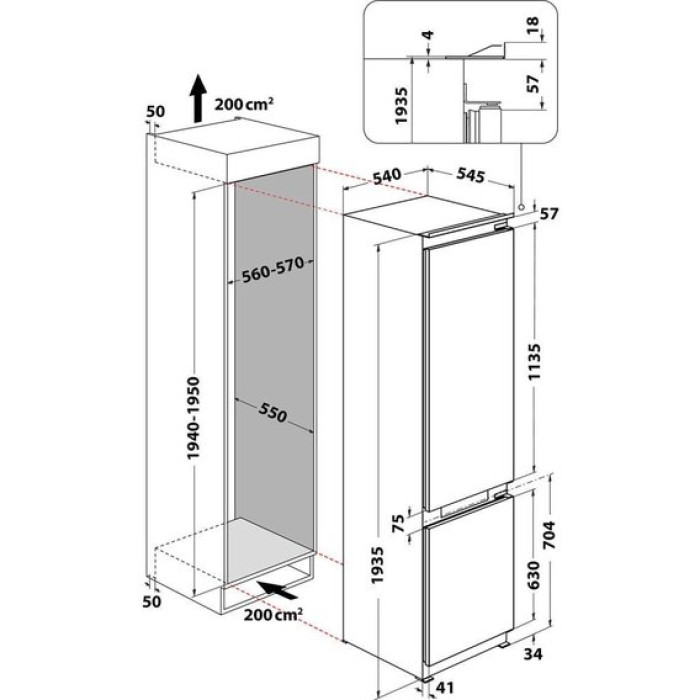 Вбудований холодильник з морозильною камерою Indesit INC20T321 випускається у дводверному виконанні та керується електронними кнопками. Модель класу енергоспоживання А+ реалізована з одним контуром, що охолоджується, який обслуговується надійним, продуктивним і малошумливим інверторним компресором. По всьому внутрішньому об'єму холодильної камери, що становить 212 літрів, холод рівномірно розподіляється багатопотоковою системою Multi Flow. Продукти викладаються на шести скляних полицях і на полицях дверцят, а овочі та фрукти поміщаються в ящик FreshSpace, де регулюється вологість, створюючи оптимальні умови для їх тривалого зберігання. Нижнє морозильне відділення ємністю 68 літрів забезпечене полицею, що висувається, і двома місткими контейнерами. Оснащене функцією швидкого заморожування, воно здатне довше забезпечувати збереження корисних властивостей їжі. Обидві камери холодильника Indesit INC20T321 розморожуються системою No Frost, яка запобігає утворенню льоду та інею.