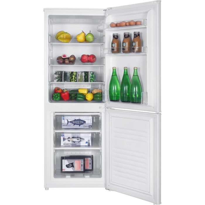 Модель оснащена простою та надійною електромеханічною системою управління з поворотним терморегулятором. У холодильній камері передбачені міцні скляні полиці, ящик для овочів та фруктів, а також полиці на дверцятах для зберігання пляшок та дрібних продуктів. Морозильник розділений на три зручні відділення для заморожування та зберігання продуктів.