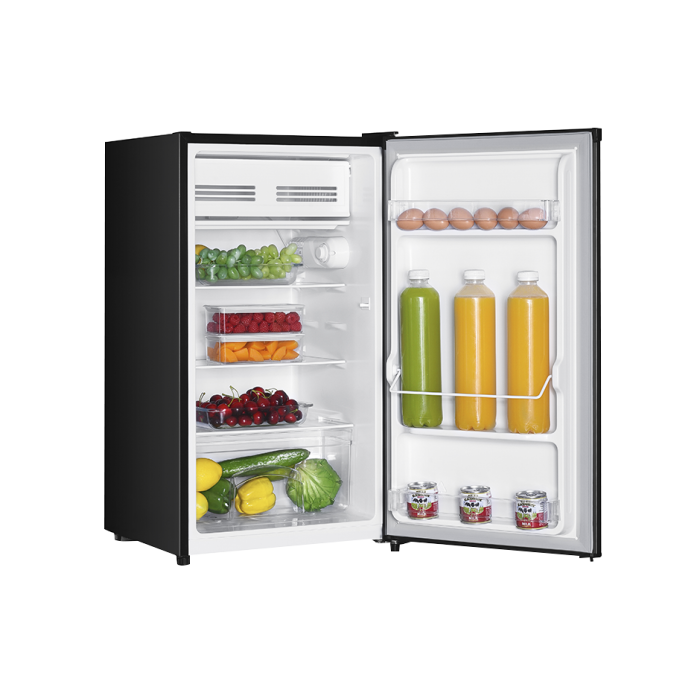 Загальний/корисний об'єм: 95/93 л; Загальний/корисний об'єм холодильної камери: 85/83 л; Загальний об'єм морозильної камери: 10 л; Клас енергоспоживання: А+; Потужність: 90 Вт; Управління: механічне; Система розморожування: ручна; Полиці: 2 (скло); Двері, що перенавішуються; Регульовані ніжки; Розміри виробу: 47,5 х44, 5х85 см; Колір: чорний.