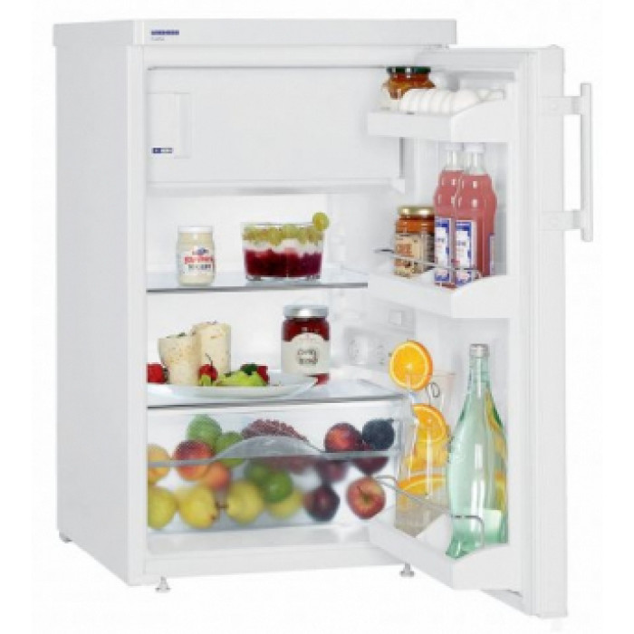 Холодильник з морозильною камерою Liebherr T 1414 при своїх малогабаритних розмірах 50.1х85х62.8 см. стане оптимальним вибором для невеликої кухні. Корисний об'єм даної моделі становить 122 літри і комплектується 2 основними полками, 1 регульованою, 3 дверними, а також 1 контейнером для овочів/фруктів. Якщо ж говорити про морозильну камеру, то вона інтегрована і розташована вгорі пристрою і здатна підтримувати температуру до -18 градусів.