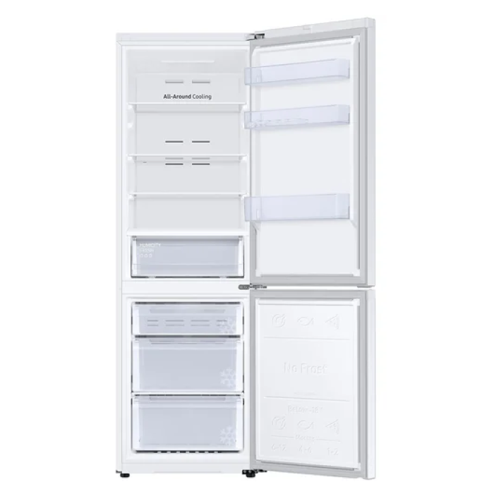 Всі куточки робочої камери холодильника ретельно і рівномірно охолоджуються, адже модель підтримує технологію All-Around cooling. Система забезпечує подачу охолоджених потоків повітря через отвори над кожною полицею, тому всередині пристрою підтримується стабільний клімат, а продукти залишаються свіжими довше.