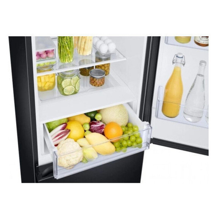 Холодильник Samsung RB34T670FBN/UA з об'ємом 340 літрів та інноваційними функціями стане незамінним для зберігання продуктів. Технологія всебічного охолодження All-Around Cooling забезпечує рівномірний розподіл холоду в кожному куточку камери, а функція No Frost запобігає утворенню льоду на стінках. Внутрішній об'єм холодильника перевищує об'єм звичайних холодильників з нижньою морозильною камерою за тих же зовнішніх розмірів.