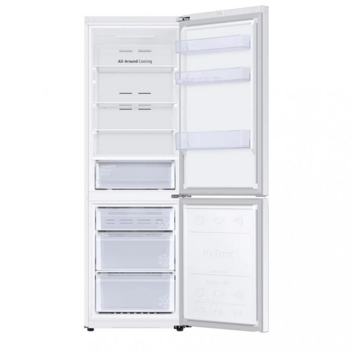 Технологія All-Around Cooling. Система всебічного охолодження рівномірно розподіляє холодне повітря по всьому холодильнику. Повітря подається через численні отвори на рівні кожної полиці, що допомагає підтримувати стабільну температуру та зберігати свіжість продуктів довше.