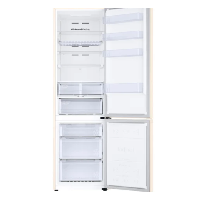 Всі куточки робочої камери холодильника ретельно і рівномірно охолоджуються, адже модель підтримує технологію All-Around cooling. Система забезпечує подачу охолоджених потоків повітря через отвори над кожною полицею, тому всередині пристрою підтримується стабільний клімат, а продукти залишаються свіжими довше.
