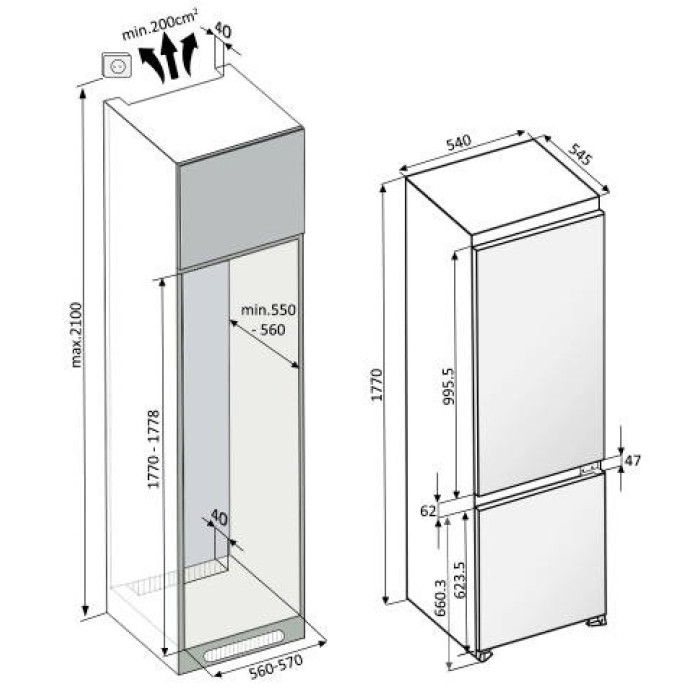 Вбудований холодильник VENTOLUX BRF 177-243FF — практична та надійна модель для комфортного зберігання продуктів. Завдяки функції швидкого заморожування, свіжі або великогабаритні продукти миттєво охолоджуються, не впливаючи на температуру запасів, що вже зберігаються. Це допомагає зберегти свіжість та поживні властивості.