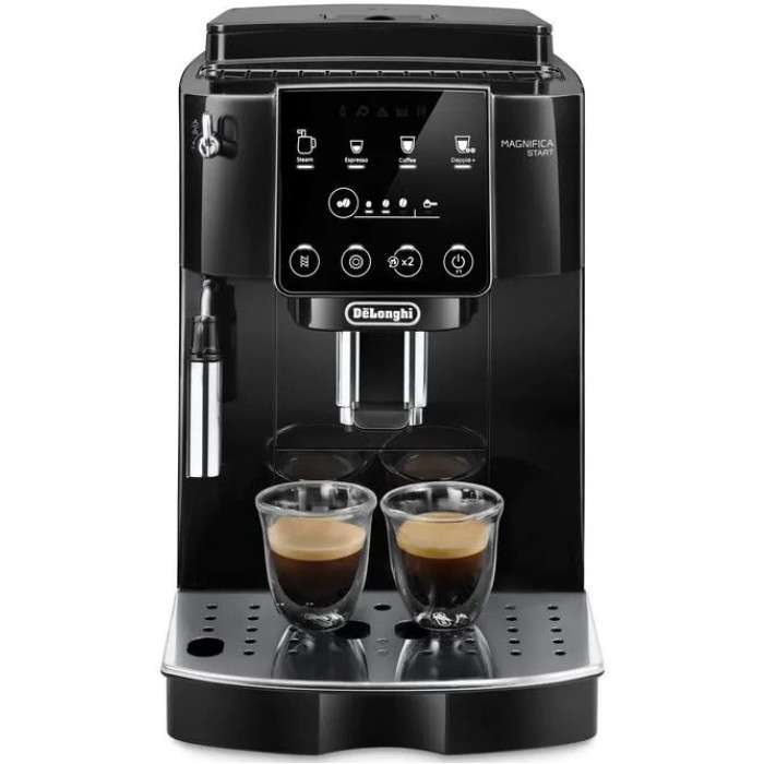 Кавомашина компанії De'Longhi представляє фірмову лінійку початкового рівня Magnifica і є недорогим кавовим автоматом. Прилад оснащений жорновою кавомолкою з 13 налаштуваннями ступеня помелу зерен та бункером на 250 грам. Ще одна ключова особливість моделі – наявність тільки ручного капучинатора – трубки з насадкою для збивання молока та подальшої реалізації популярних кавово-молочних рецептів – латте, капучино тощо.