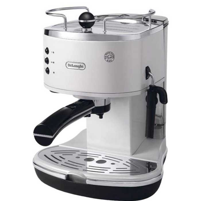 Настільна кавоварка еспресо Delonghi Icona ECO 311 W не тільки гарно виглядає та вдало підкреслить будь-який інтер'єр. Вона має хороші технічні характеристики, здатна прослужити досить довгий термін, радуючи щоразу смачними і підбадьорливими напоями на основі кави і молока. Корпус моделі виконаний із міцних матеріалів, має якісне глянсове покриття, при габаритах 29x26x31,5 см важить близько 4,1 кг. Робота Delonghi Icona ECO 311 W можлива як з меленою кавою, так і з чалдами. У комплекті присутні тримач фільтра з подвійною лійкою та насадка-капучинатор. Прозорий резервуар для води має ємність 1,4 л, легко знімається. Завдяки спеціальному майданчику для підігріву кухлів температура у приготовленого напою не знизиться, підтримуватиметься на певному рівні стільки, скільки потрібно.