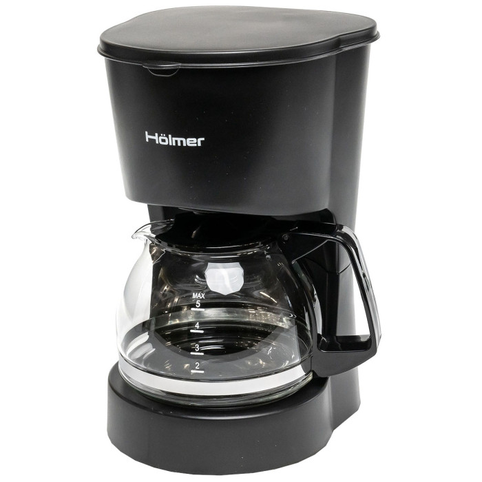 Недорога краплинна кавоварка торгової марки HOLMER - це прилад для шанувальників фільтр-кави. Модель отримала пластиковий корпус чорного кольору, але у продажу також можна зустріти споріднену версію із сріблястими вставками HCD-013SS. Зараз можна приготувати до 5 порцій бадьорого напою, оскільки місткість скляного кавника становить 600 мл. Аналогічна ємність і у вбудованого бака для води, розташованого в тильній частині корпусу.