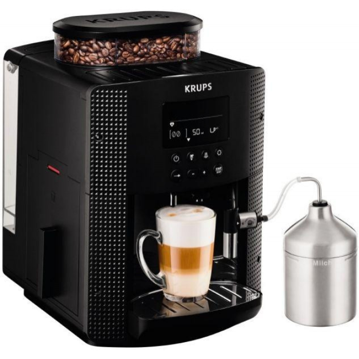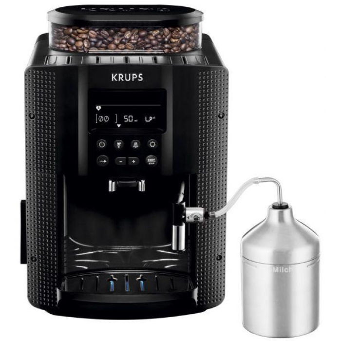 Багатофункціональна кавова машина автоматична Krups EA816B – компактний апарат чорного кольору, який можна зручно розмістити на кухні, в кафе чи офісі для приготування смачної кави із зерен. Модель потужністю 1450 Вт забезпечує тиск пари 15 бар, завдяки чому виходить напій з неповторним та насиченим смаком. За допомогою вбудованого млина зручно виконувати помел зерен безпосередньо перед приготуванням, тому напій виходить свіжим та ароматним. Користувачеві надано можливість вибирати бажаний рівень фортеці еспресо. Крім цього, він може одночасно готувати дві порції улюбленого напою або порадувати себе та гостей чашкою капучіно з ніжною піною. Прилад обладнаний дренажним відсіком для крапель, що забезпечує чистоту та порядок на поверхні столу. Кавова машина Krups EA816B автоматична для додаткової зручності оснащена інформативним дисплеєм, на якому відображаються етапи приготування напоїв.