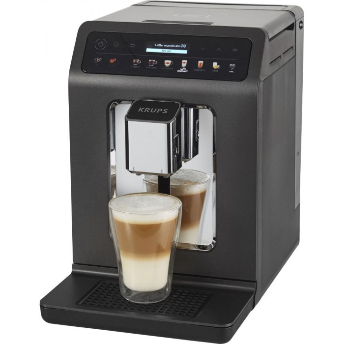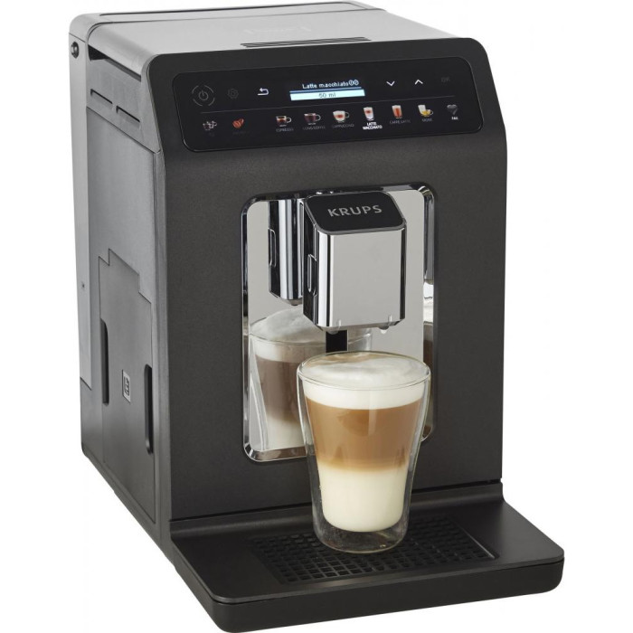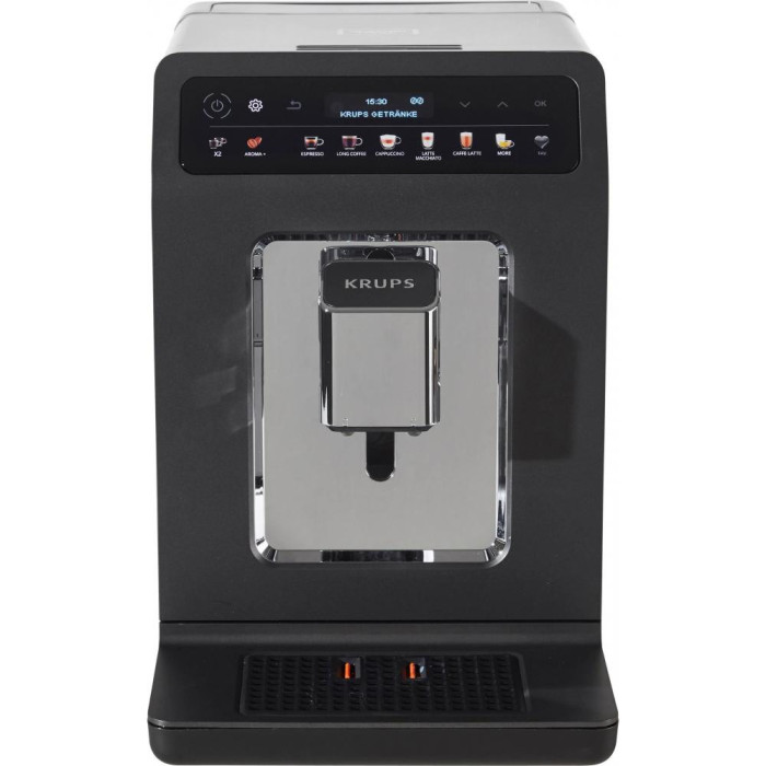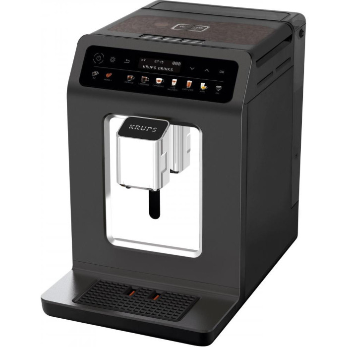 Кавомашина автоматична Krups EA895N10 є настільним апаратом сучасного дизайну, виконаним у корпусі стильного чорного кольору. Модель використовує зерна кави з контейнера місткістю 260 грам. Вони розмелюються вбудованим млином із зносостійкими металевими жорнами безпосередньо перед приготуванням, при цьому ступінь помелу задається п'ятьма рівнями. Прилад потужністю 1450 Вт створює тиск 15 бар, завдяки чому отримується максимум смаку та аромату. Пристрій автоматично готує кавові напої з трьома налаштуваннями фортеці. Розлив може проводитися одночасно в дві чашки, причому сопло подачі регулюється по висоті. Крім того, є можливість запрограмувати 12 індивідуальних рецептів та активувати їх одним дотиком. Модель оснащена технологією Quattro Force та системою Thermoblock, що оптимізує процеси приготування для досягнення найкращого результату. Керується автоматична кофемашина Krups EA895N10 інтуїтивною кольоровою електронною панеллю.