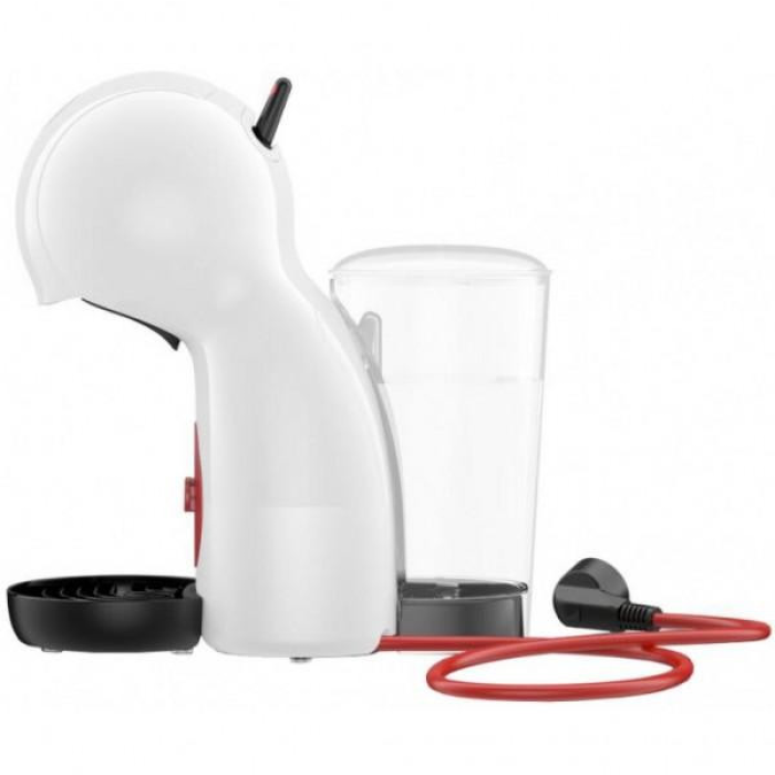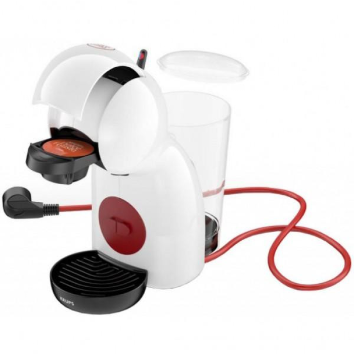 Капсульна кавоварка еспресо Krups Nescafe Dolce Gusto Piccolo XS KP1A0131 є настільним пристроєм білого кольору та сучасного дизайну. Вона служить для приготування кавових напоїв з герметичних капсул, які тривалий час зберігають свіжість меленої кави. Апарат потужністю 1340 Вт обладнаний резервуаром для води ємністю 0,8 літра та функціонує з робочим тиском 15 бар, завдяки якому з капсули максимально вилучається аромат кави. Пристрій автоматично вмикається під час відкриття тримача для капсули і за 40 секунд виходить на робочий температурний режим. Потім слід вставити капсулу і повернути важіль, щоб приготування напою почалося, користувач може задавати обсяг порції. Капсульна кавоварка еспресо Krups Nescafe Dolce Gusto Piccolo KP1A0131 відноситься до класу енергоспоживання А. Модель оснащена захисною системою, яка автоматично відключає її через 1 хвилину після закінчення використання.