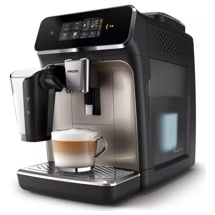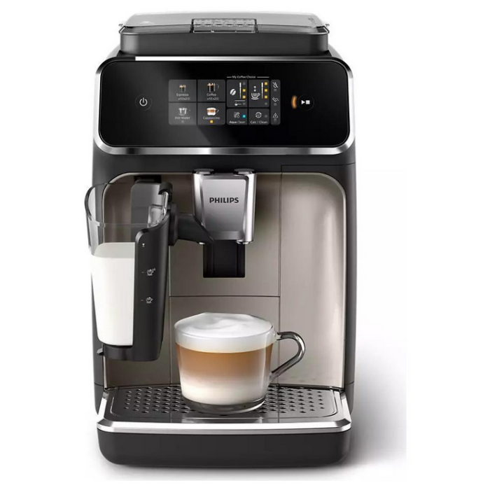 Philips EP2336/40 – це автоматична кавоварка, яка готує три види кавових напоїв одним натисканням на кнопку. Сучасна молочна система LatteGo швидко збиває повітряну молочну піну для ніжного капучино. Запатентований фільтр для води AquaClean гарантує, що кожна чашка кави виготовлена з чистої води без домішок.