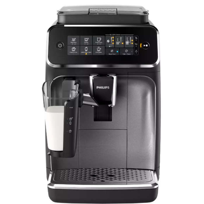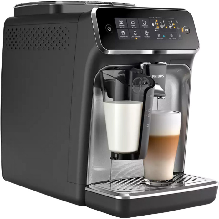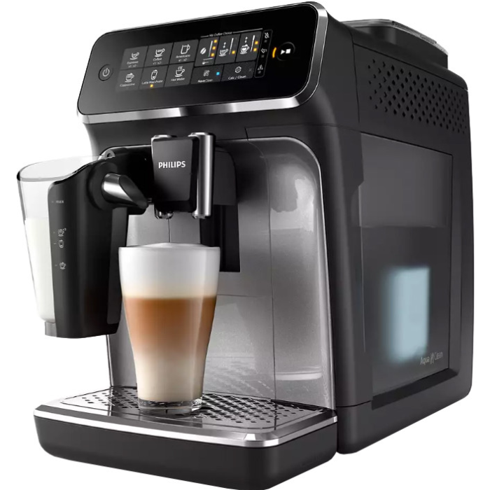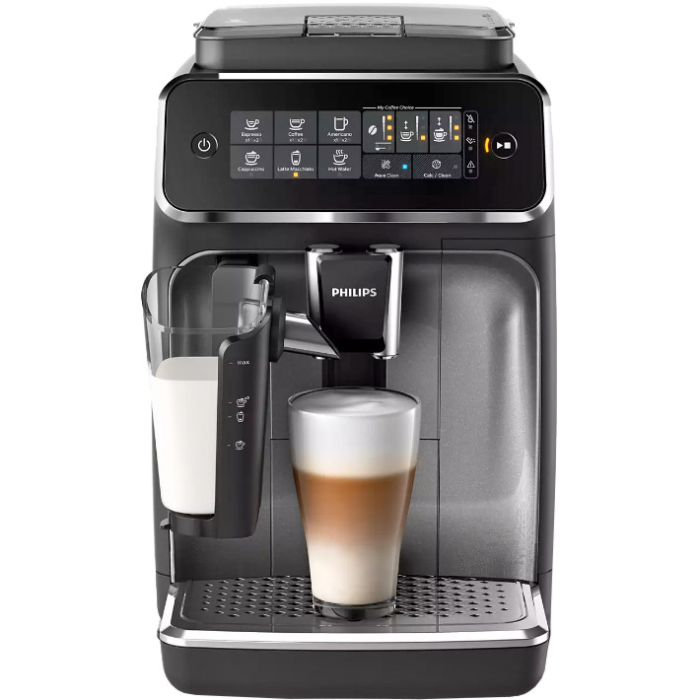 Кавомашина автоматична Philips EP3246/70 є настільною моделлю для приготування кавових напоїв із зерен потужністю 230 Вт з робочим тиском 15 бар. За допомогою сенсорного керування можна вибрати п'ять видів кави і приготувати напій після одного дотику до екрана дисплея. Для приготування кави з молочною піною капучинатор LatteGo збиває молоко ємністю 0,26 літра і подає піну в чашку. Фортеця та об'єм порції задаються в меню My Coffee Choice. 275 грам насіння кави засипаються в герметичний контейнер, а перед приготуванням напою потрібна кількість перемелюється керамічними жорнами з дванадцятьма ступенями помелу. Ароматний напій виходить завдяки системі Aroma Extract, що вибирає оптимальну температуру та кількість води, яка проходить через очисний фільтр AquaClean. Знімні деталі автоматичної кавомашини Philips EP3246/70 легко знімаються і легко миються в посудомийній машині або під струменем води.